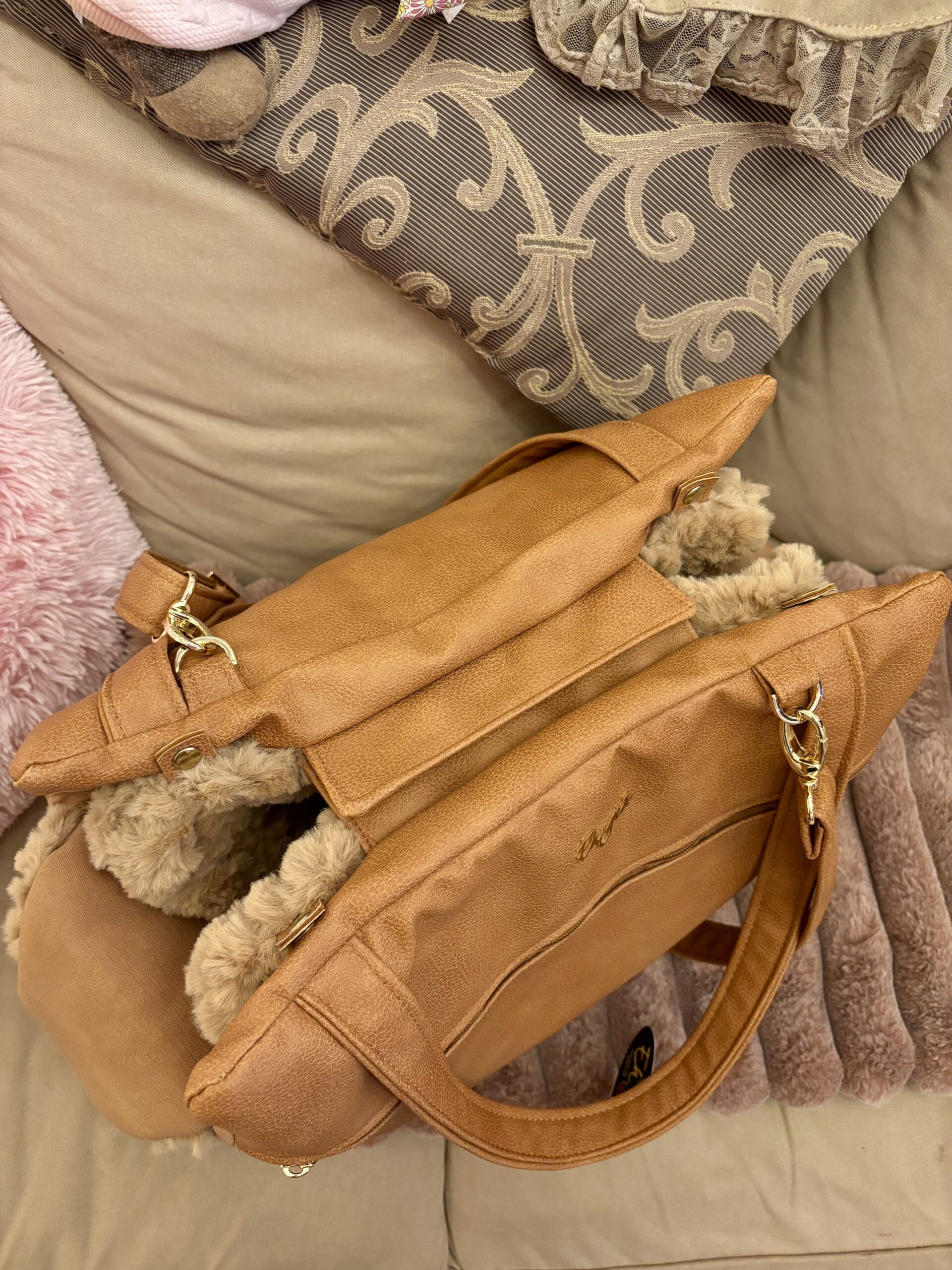 Sac « Glamorous » multi saisons en simili cuir, très confortable, pratique pour toutes les saisons grâce son intérieur en fausse fourrure et coton amovible et réversible.
