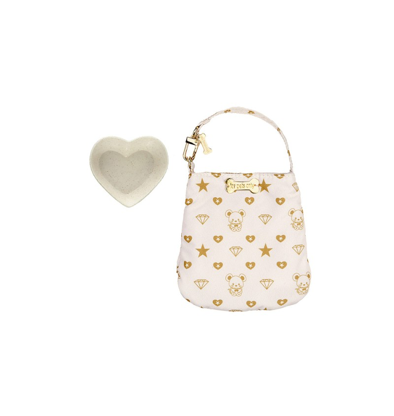 Un petit sac tellement chic. Vous pouvez l’emporter partout avec vous et être sûre que votre petit trésor aura son bol personnel où qu’il aille. Parfait pour accrocher à votre sac préféré !