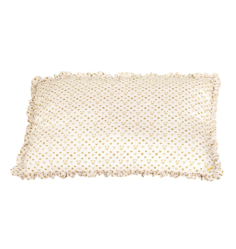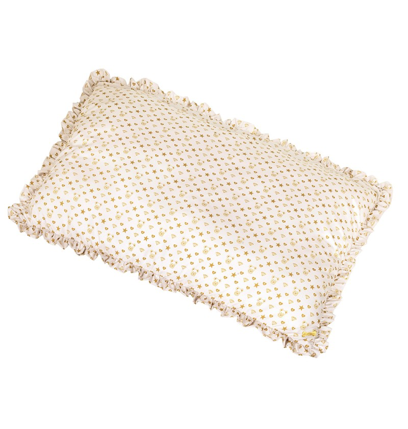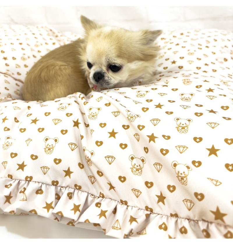 Tapis/matelas d’été, confectionné dans le tissu TopoMio Monogram Golden, orné d’un délicat volant.