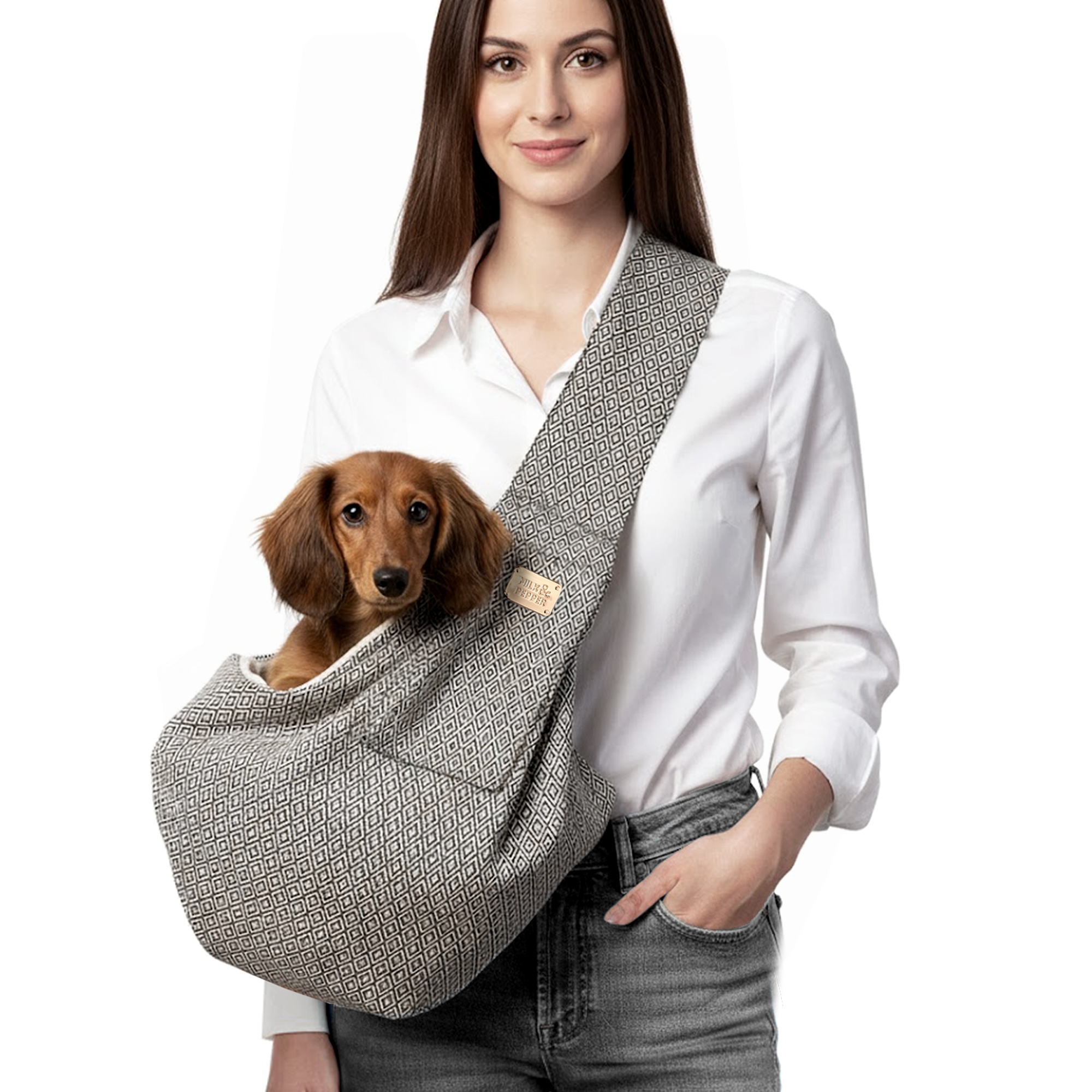 - Poche côté avec plaque en métal doré « Milk&Pepper »