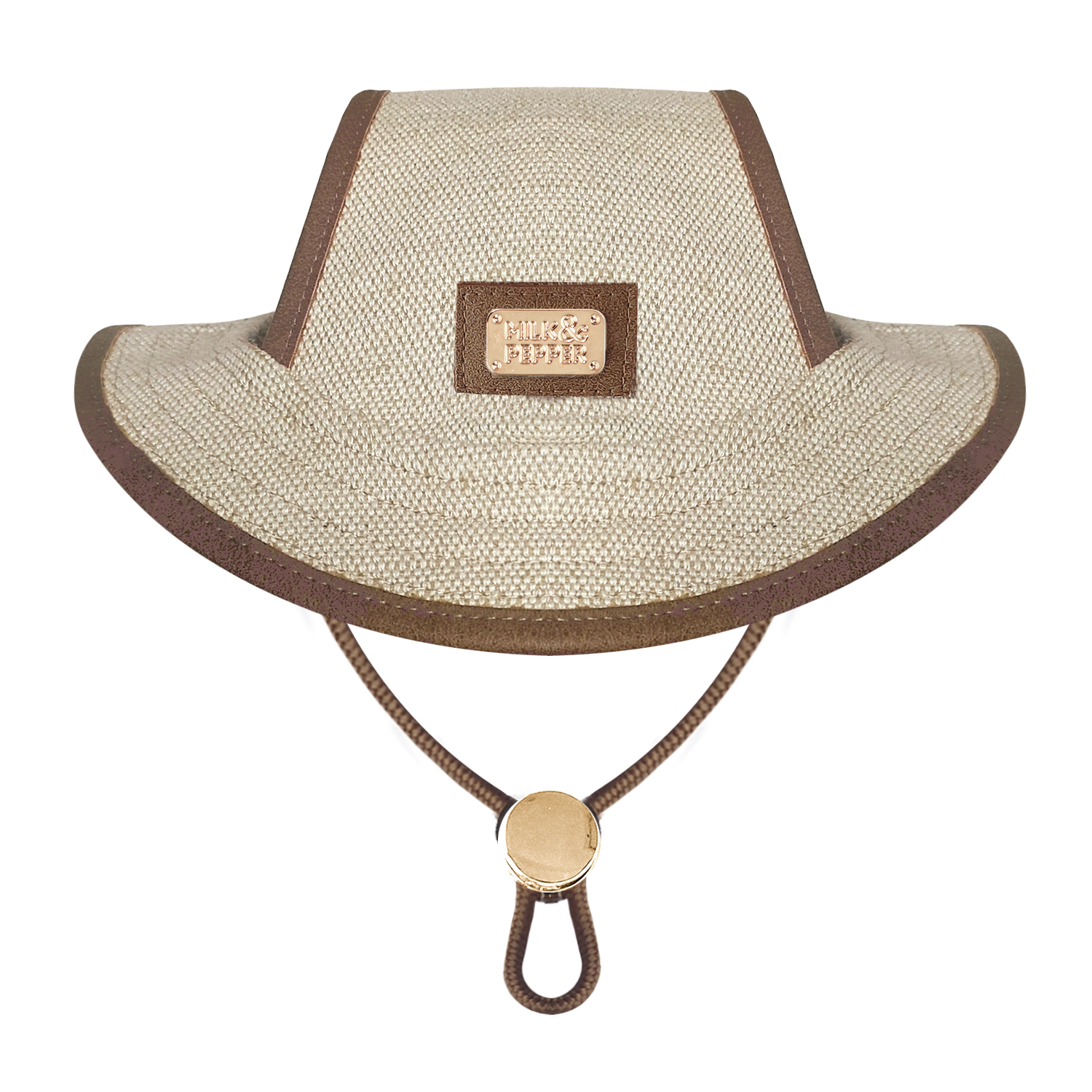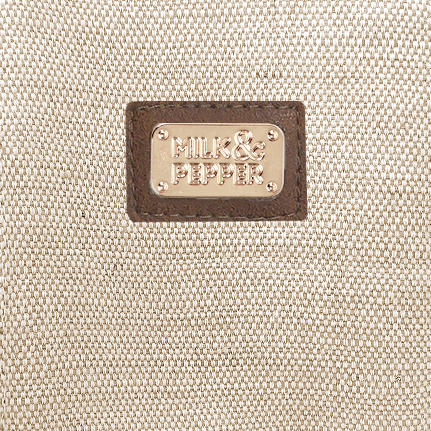 - Empiècement en imitation cuir marron et petite plaque en métal doré « Milk&Pepper »