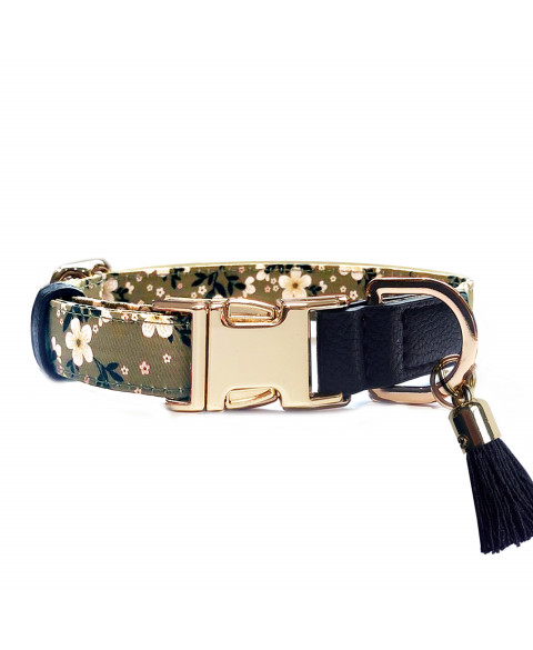- Collier réglable vert olive avec imprimé fleuri multicolore (imprimé exclusif) et imitation cuir vintage Marine