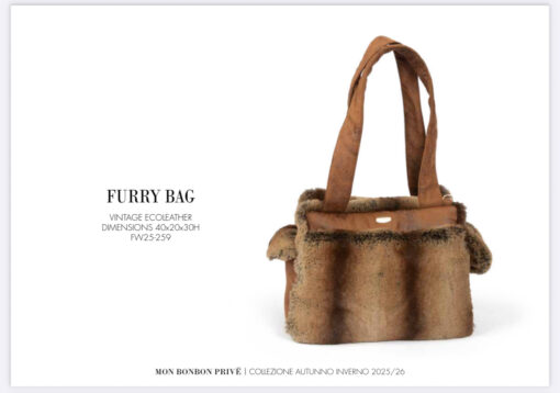 Sac Mon Bonbon « Furry » en simili cuir vintage recouvert de fausse fourrure toute douce.