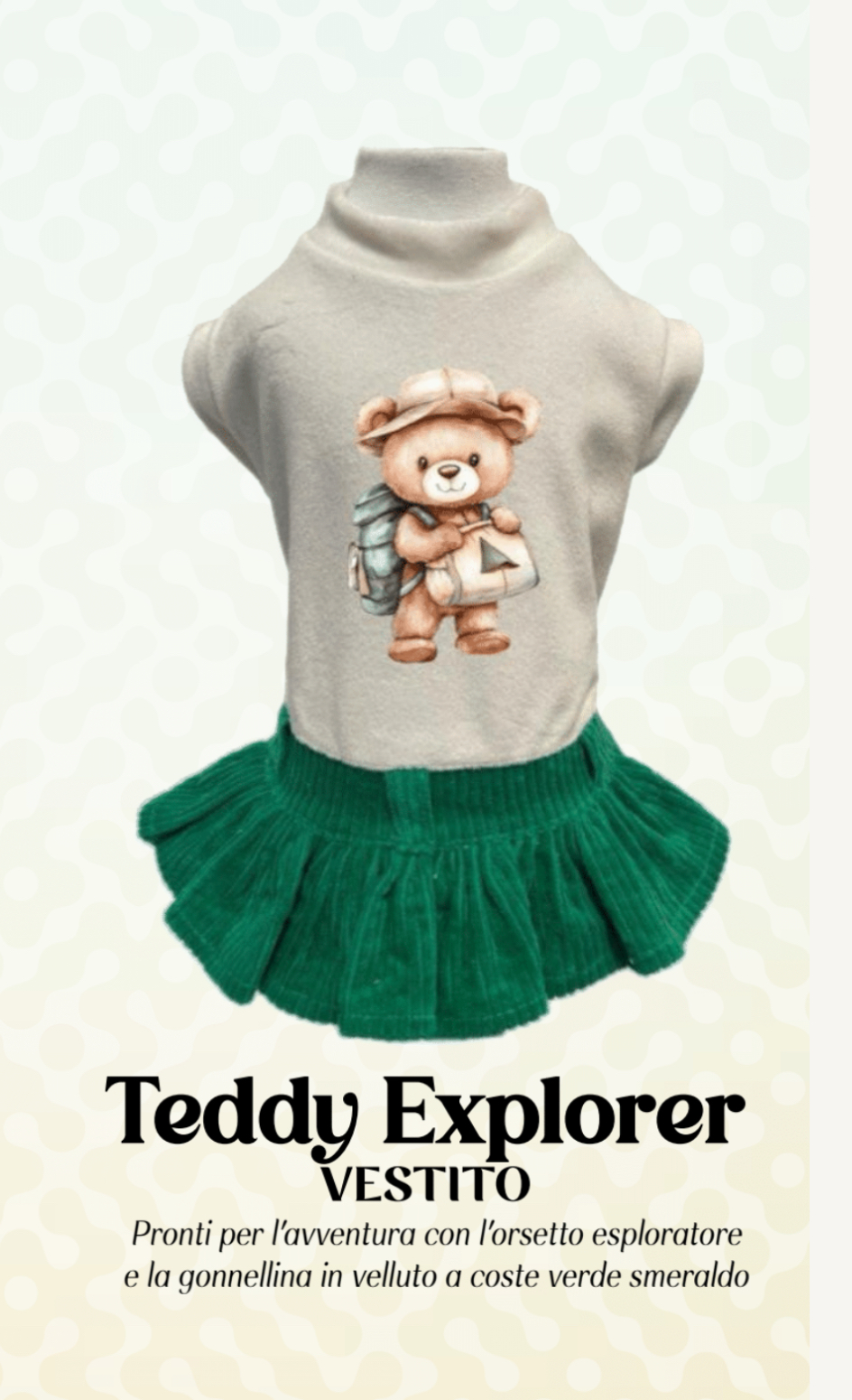 Jolie petite robe pull au toucher velours tout doux avec une illustration d’un ourson et un petit jupon en velours côtelé.