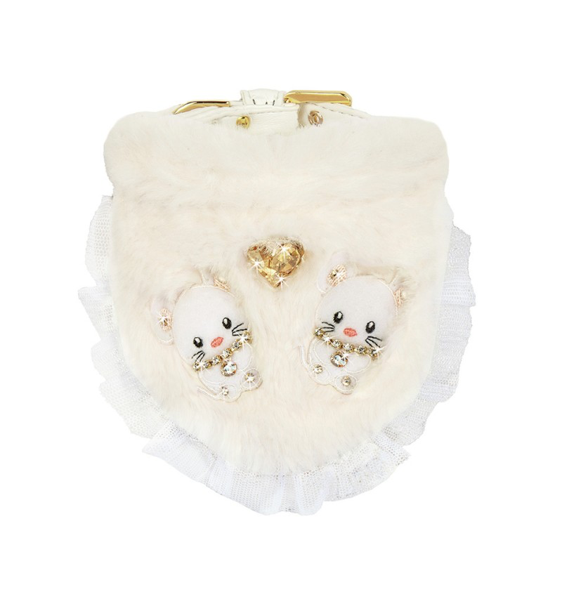 Le nouveau collier bavoir pour nos chers animaux de compagnie est absolument adorable ! Confectionné en fausse fourrure ultra-douce, il est orné de deux ravissantes breloques TopoMio en cristal.