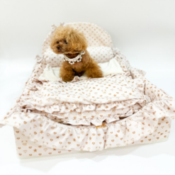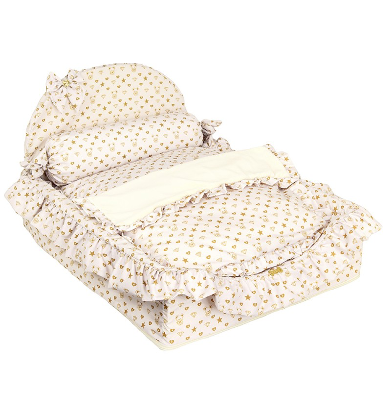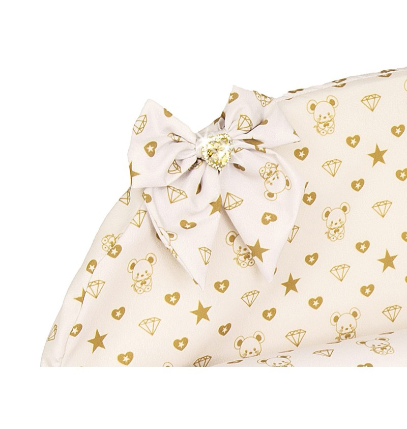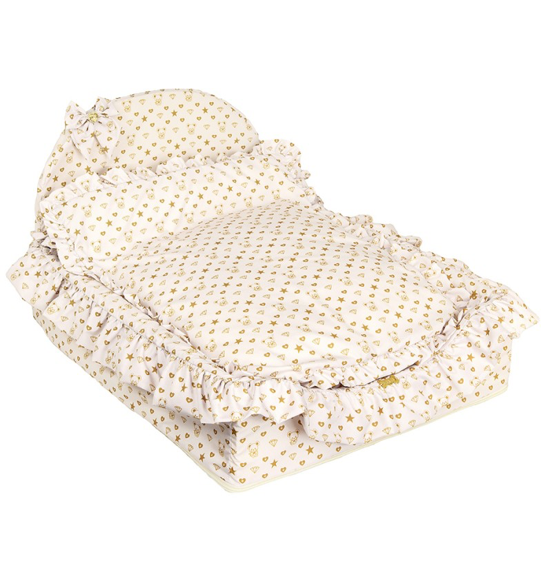 Orné de volants délicats et d’un nœud scintillant, il est livré avec un adorable coussin pour la tête et une magnifique housse en chenille et tissu lavable.