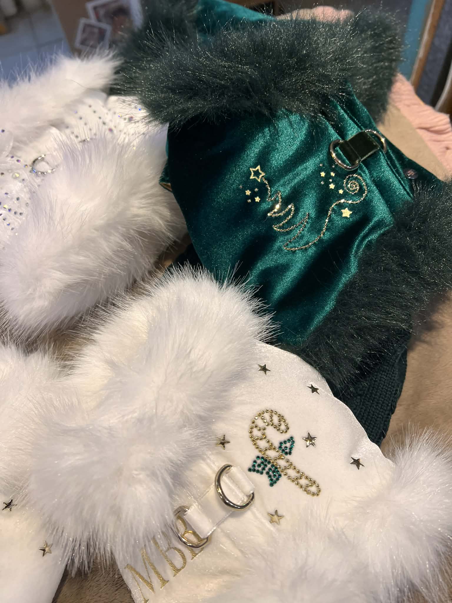 Harnais façon petite doudoune en velours vert émeraude ♥